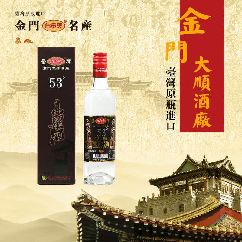 金門大順酒廠,座落于金門北緯24.5度,地處海隅,濱大陸,得天獨厚的地理,使它擁有絕佳的水質、空氣、氣候及原料的四大天然釀酒條件。金門大順酒廠的高粱酒釀造是利用金門特產『旱地高粱』、引用當地水質甘甜的泉水、金門潔凈的空氣與氣候條件,并承襲傳統古法之釀酒技術,加上獨家的釀酒專業技術經驗【三離二鍋一翻】的發酵釀酒工藝,經掐頭去尾后入庫,去蕪存菁。而造就出金門大順酒廠的高粱酒特色「清澈透明、質地純凈、芳香濃郁」之一系列高粱酒。金門大順酒廠制酒承襲著金門得天獨厚的地理環境,加上三代流傳之古法醇釀技技術,結合經驗與現代化生產,釀出風味獨特,香、醇、甘、冽的【臺島】【臺金爽】【牛樟芝高粱酒】【龍騰鳳舞】【紅雙十】【陳高吶】【臺灣小酒】等多樣系列產品。真實原味、清香散發,甘冽醇厚的絕佳風味。